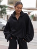 Oversizowa bawełniana BLUZA z dresu drapanego na stójce z zamkiem czarna X477