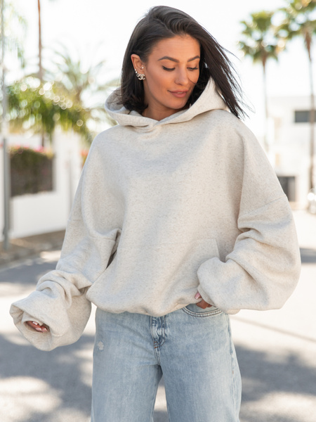 Viralowa Dresowa bawełniana z lnem BLUZA z kapturem oversize szeroka beż melanż E644k01