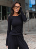 Bestseller!Wiscozowa dopasowana BLUZKA z długim rękawem czarna X417