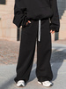 Bestseller!Dresowe bawełniane SPODNIE oversize ze średnim stanem z przeszyciami czarne X401
