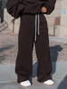 Dresowe bawełniane SPODNIE oversize ze średnim stanem z przeszyciami czarne X401
