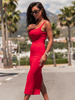 Mini SUKIENKA wiązana na szyję z odkrytymi plecami z przewiewnej tkaniny czerwona X129