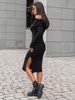 Dopasowana codzienna SUKIENKA swetrowa o klasycznym splocie opuszczana na ramiona czarna X412