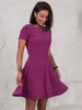Krótka SUKIENKA z rozkloszowanym dołem z dzianiny przeplatanej błyszczącą nitką różowa E608 k01